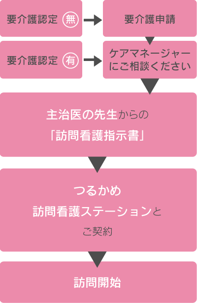 病気やケガなどでご家庭で看護処置が必要、またはそれに近い状態にある方。医師の指示などにより訪問看護が必要な方。
